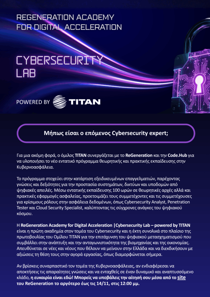 Ο όμιλος ΤΙΤΑΝ, σε συνεργασία με το ReGeneration και την Code.Hub, υλοποιεί ένα νέο