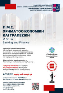 Το Τμήμα Χρηματοοικονομικής και Τραπεζικής Διοικητικής του Πανεπιστημίου Πειραιώς, προκηρύσσει τα ακόλουθα μεταπτυχιακά προγράμματα: